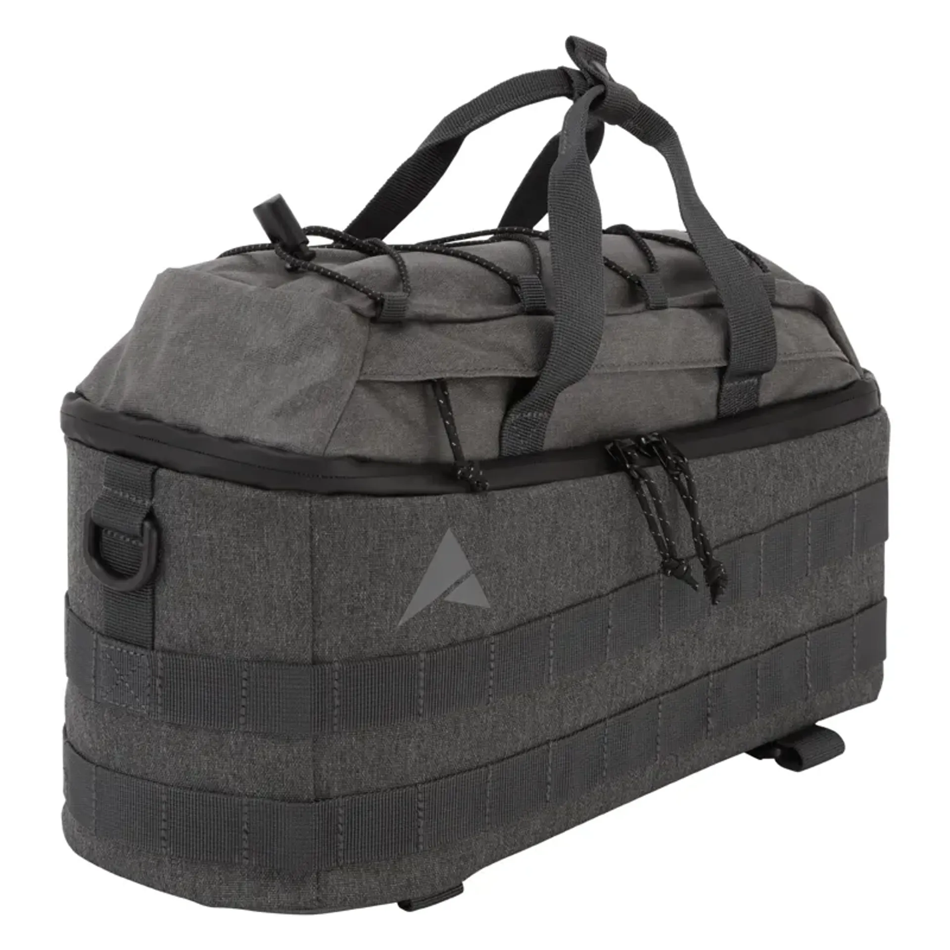 The dryline rackpack is a versatile rear rack bag perfect for storing belongings on any adventure, especially bikepacking, touring or commuting. Featuring an adjustable inner divider, zipped lid pocket and elasticated bungee cord providing a flexible storage solution whilst the molle webbing allows you to attach altura anywhere drybags when you need even more room. An adjustable/removable shoulder strap transforms the rackpack into a stylish shoulder bag.